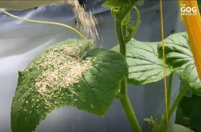 Bij Van Gog Kwekerijen lopen we graag op de zaken vooruit, in plaats van achter de feiten aan. Daarom zijn er in onze kassen elke dag medewerkers fulltime in de weer om onze komkommerplanten preventief te inspecteren op ongewenste bezoekers, zoals spint, trips, luis of meeldauw. We noemen dit scouten. De scouts gaan door de rijen heen, staande op een kar, zodat ze van bovenaf in de planten kunnen kijken. En zo goed zicht hebben op eventuele ‘slechte’ beestjes, die het gewas aantasten.